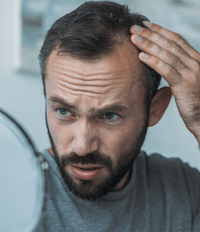 Hair loss becomes noticeable when light reflects off areas where hair used to diffuse it. That contrast — between hair and skin — is what makes thinning obvious.